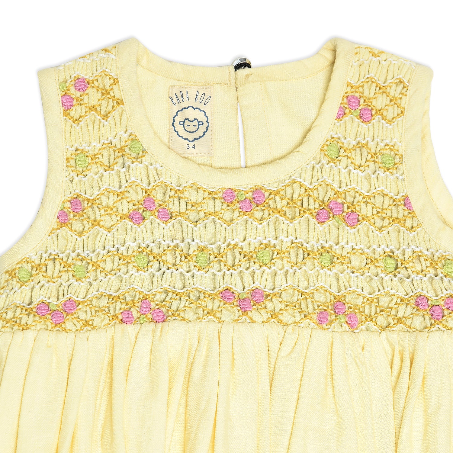 In a gentle shade of sunshine yellow, this hand-smocked dress is adorned with intricate floral embroidery. Made from premium cotton fabric, it combines sophistication with playful ease, keeping your little one stylish and comfortable all day long.