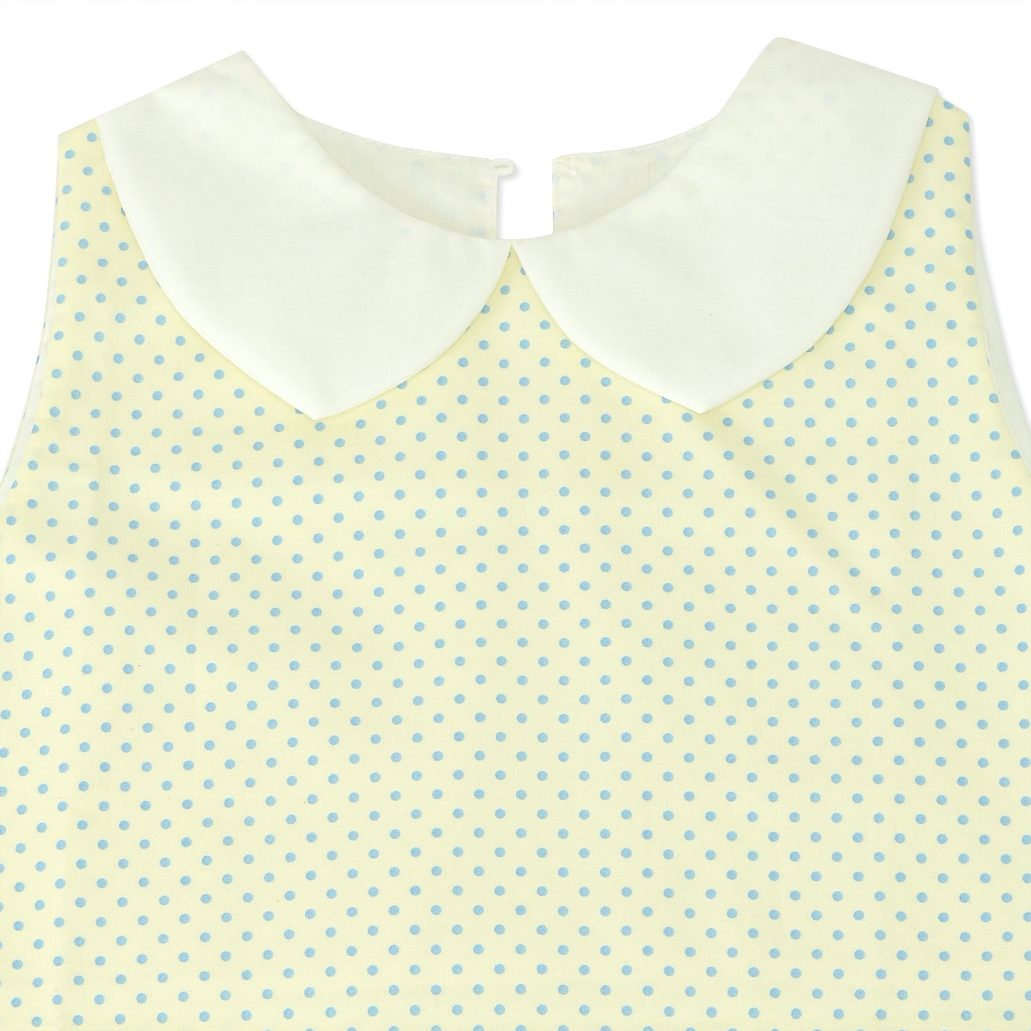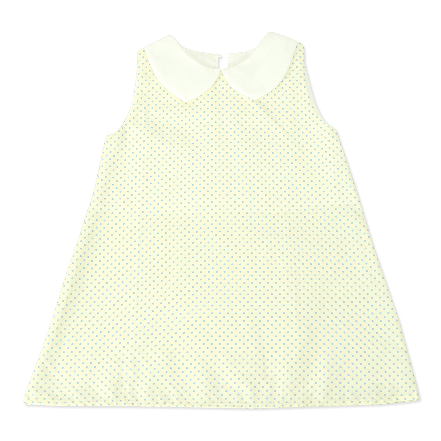 A playful sleeveless baby dress with a classic Peter Pan collar and all-over polka dot print. Lightweight and comfy, making it an easy pick for everyday wear.