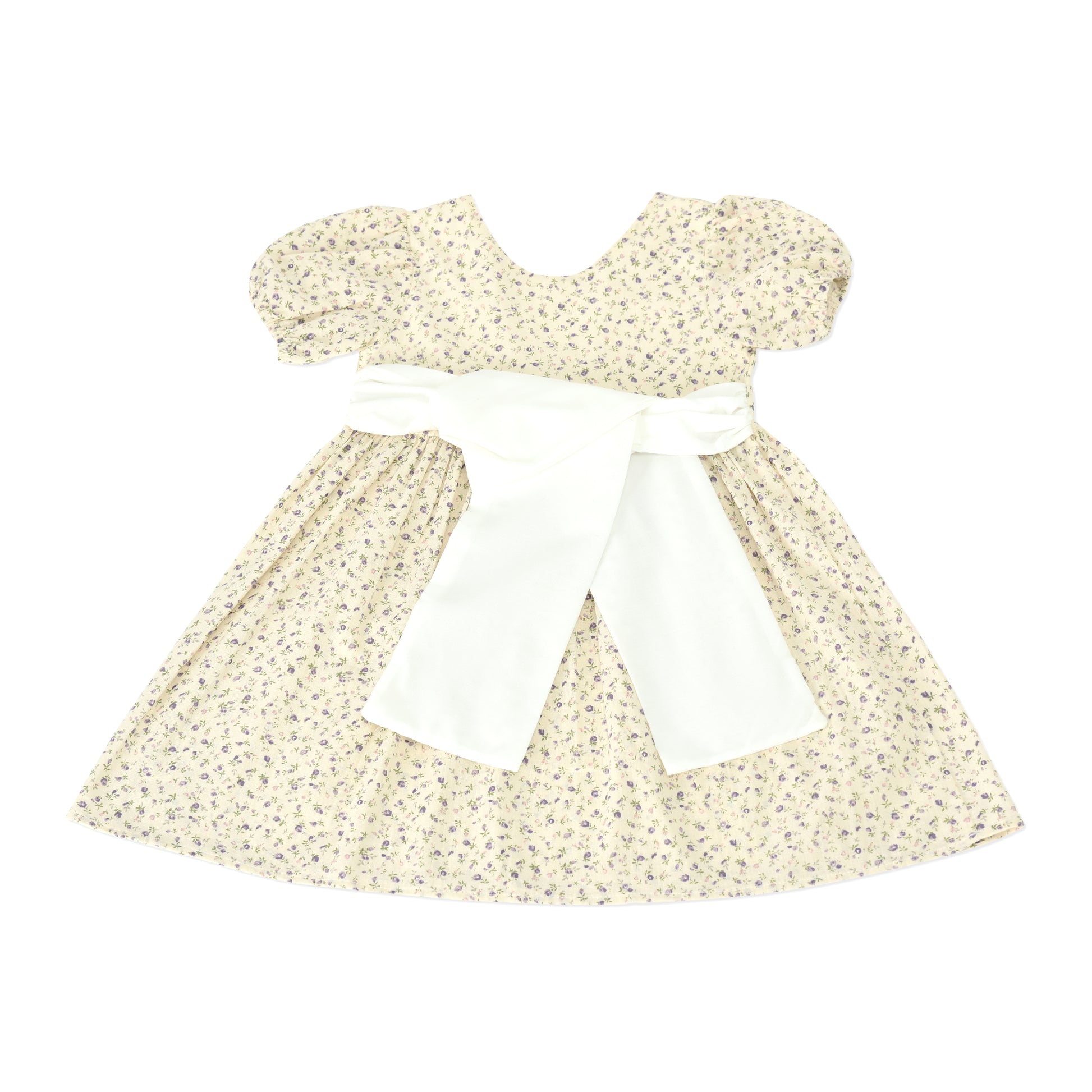 A charming vintage-inspired dress featuring delicate floral prints, puff sleeves, and a flattering V-neckline. Finished with a graceful back bow tie, this lightweight cotton dress is perfect for everyday wear or casual outings with a touch of elegance.
